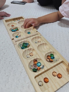 マンカラカラハは、るーvs次女と私という、大人2人掛かりでかろうじて勝ったのですが、ナインタイルは大敗(;^_^A