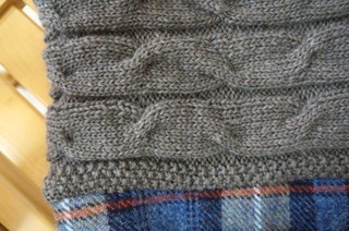 でもケーブル編みと布のコラボもおもしろいものができるなぁと思ったので、何かいい作り方を探っていきたいです。