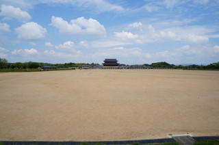 | 線路を越えると大極殿が見えますが、この広場が中央区朝堂院になります。 | そして、第一次大極殿院に入ります。 |