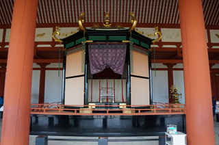 | 大極殿内にある、玉座。 | 大極殿から見た朱雀門。 |