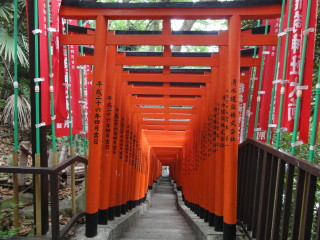 | 神門側は、こんな景色。高層ビルに囲まれています。また、このビルの横には首相官邸もあります。 | 赤坂見附側の稲荷参道。 |