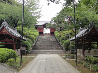 | 最後は、惣門。 本坊に通ずる所にあり、形式は社寺系のものでなく、大名屋敷の表門の形式で、柱や冠木(かぶき)なども太く、全体にどっしりした構えである。五代将軍徳川綱吉公の祈願寺でもあり、将軍と桂昌院の御成りのための格式の高い門が造営された。 |