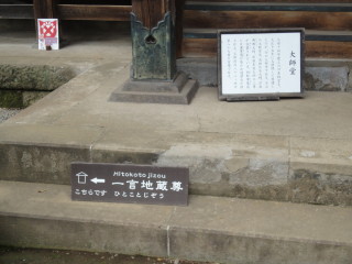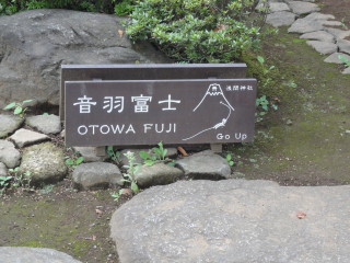 | 大師堂には、こんな看板が・・・・。一言地蔵で、願い事をひとつだけ叶えてくれるようです。 | 不老門に向かう参道にこんな看板が。東京に多く残る富士塚のようです。 |