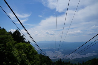 | そしていよいよ京都側に降ります。 叡山ロープウェイ。眼下には洛北の街並みが広がります。約3分の乗車。 |