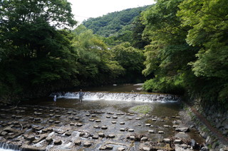 | ケーブル八瀬駅に到着しました。比叡山越えができました。 | ケーブル駅から八瀬比叡山口駅に向かう途中の高野川。新緑と川の輝きが気持ち良かったです。 |