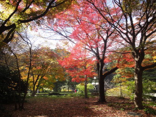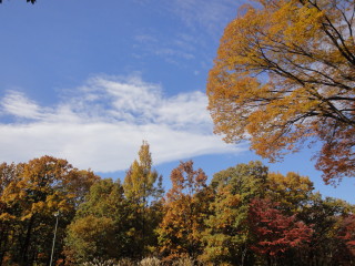 | 九代将軍の家重時代の庭園をもとに復元されました。 | 紅葉に秋の雲!いい感じです。 |