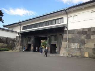 | 素晴らしい天気で、濠に移る姿は優美ですね。 | こちはら、大手門、ここから東御苑に入ります。 |