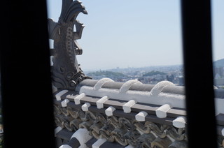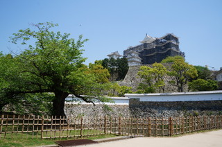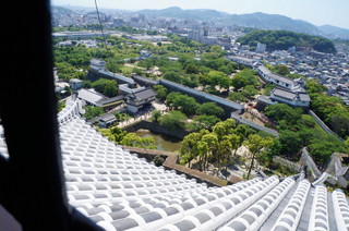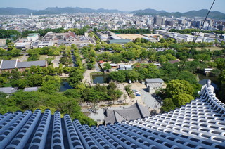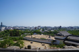 | 天守閣を出て、備前丸の広場から、お城を見上げて、そして、城下を見下ろしてみました。姫路の街が見渡せます。 | それにしても立派です。後世に残したい世界遺産ですね。 |