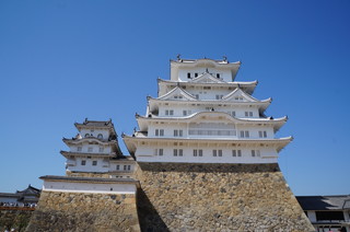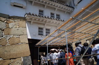 | 改修工事を終えた姫路城(白鷺城) <場所> 現在の姫路城は、今年で世界遺産に登録され20年を迎えました。その歴史は古く、初代は1333年 赤松貞範が、姫山に城を築き、その後、小寺家、小寺の命を受けた黒田家が城主となり、1567年年には、官兵衛に家督をつぐ。現在の姫路城は、池田輝政が、1609年に完成させたものです。そして、1993年には、世界遺産に登録されました。 http://www.city.himeji.lg.jp/guide/castle/ 2014年5月1日にも姫路城を訪ねましたが、この時はまだ改修工事の真っ只中で天守閣には登れませんでした。そこで今年は改修工事を終了したので、再度、チャレンジです。 しかし、発想はみなさん同じ?で、入場するのに長蛇の列でした。並び始めたのが11時。そして、天守閣を出たのが14時30分でしたから、3時間半を有しました。でも、その価値ある姫路城でした。さすがに国宝であり、天守閣内はタイムスリップしたような感じになれます。かなり階段はきついですけどね。 |