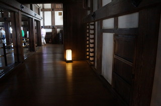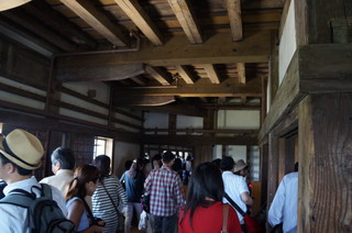 | 内部は歴史を感じる作りで、刀、やり、武者隠しの場所など、守りの堅い要塞のようです。 | |