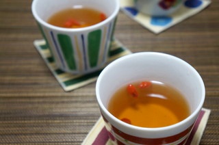 同じく体を温める効果のあるクコの実を浮かべて。