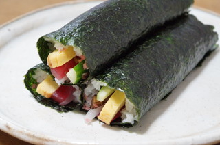玉子を茹でてマッシュしてマヨネーズで和えたもの、ハム、レタス、キュウリの4種類です。