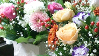 お祝いの宴でいただくすき焼きの材料、ケーキ、両親にプレゼントする花束を調達してきてくれました。