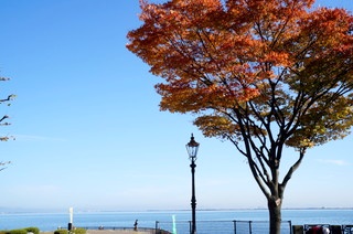 私が水際に近づくと、カモさんたちはす〜っと水際から離れ沖の方へ行ってしまいます。
