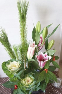 「知」という字ではないかと思います。 この一年を一月から順を追って思い返してみると、たくさんの「知」がありました。 例えば、今年になって初めて百貨店の売り場の一部に自分の作ったものを置かせていただく機会に出合いました。 今まで出店させていただいていた手作り市たとは違うところがいろいろあり、百貨店ならではのルールというか心構えを知りました。 それから家族での旅行。 初めて訪れる土地で、その場所ならではの景色や味、空気を知ることができました。 また、治療の一環で歯科から出された薬が体質に合わず、発熱するわ発疹が出るわで、お薬の恐ろしさを初めて身をもって知りました。 本当にいろいろなことがあった2017年。 「体調に気をつけて元気に過ごす」という今年の目標は、先ほど書いたお薬のせいで達成できませんでしたが、概ね元気で、思いがけないハッピーがたくさんあった一年でした。 そして相変わらずマイペースな更新で、相変わらずの内容の、このページに立ち寄ってくださる方の存在も、とてもハッピーです。一年間ありがとうございました。 来年もボチボチとマイペースですが、 私が下手くそなりにも作り出していくものや、日々の生活でバタバタあがいている様子を記していきたいと思っています。よろしかったらまたお付き合いください。 天気予報では寒さの厳しいお正月になりそうですが、お体に気をつけてどうぞ良いお年をお迎えください。 今年ラストの写真は、次女が先日のレッスンで活けたお花。 葉牡丹やユリ、センリョウ、マツなど、歳神様を迎える準備は万端です。 ![]() (2017.12.29 miyu) |