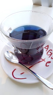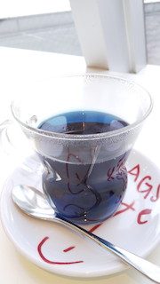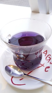 最後に写真を少し。先日カフェでいただいたバタフライピーのハーブティーです。