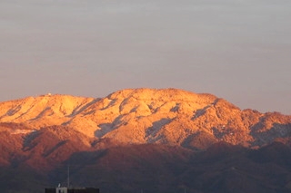 今朝は雲が多い空でしたけれど、雪化粧の比叡山辺りだけ朝陽が当たっていて、本当にきれいでした。