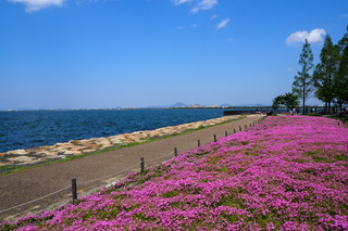買い物ついでに湖岸へ出てみると、相変わらず曇り空にも関わらず雪を被った伊吹山が見え、