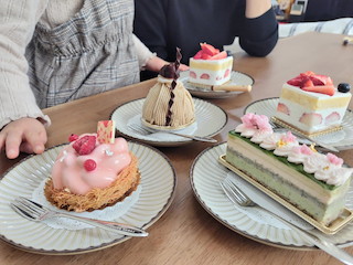 私はキウイのクリームのケーキを頂きました。爽やかな甘さのクリームがおいしかったです♪