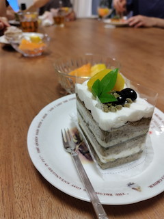 「はじめまして」と「おめでとうございます」のご挨拶をして、私たちが差し入れしたケーキでみんなでおやつタイム。