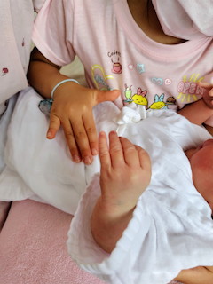 | ご報告が少し遅れましたが、6月23日午前9:30、長女が2人目の女の子を出産しました。 おかげさまで母子ともに元気にしていて、ホッとしています。 がんばってくれた長女にも、無事に生まれてきてくれた孫にも、感謝しています。 長女にはまずはゆっくりしてもらって、お産の疲れを癒してもらいたいですし、孫にはこの世界にゆっくり慣れていってもらえたらいいなと思っています。 今後も孫の成長を記していきたいなと思っています。お時間がありましたらお付き合い頂けたら嬉しいです。 孫が2人になりましたので、「孫」と書いてもどちらのことなのかわかりません。 そこでニックネームを考えました。 それぞれの名前の一部を英語にして、その初めの音に「ー」をつけて伸ばします。 お姉ちゃんが「るー」 生まれたばかりの妹が「りー」です。 まだ私も使い慣れていませんが、使って行くたびにだんだん愛着が湧いてくるニックネームではないかと思います。 どうぞよろしくお願いいたします。 写真向かって左側は、生まれた日のりー。 向かって右側は生後2日のりーをクッションの上で抱っこしてお腹をトントンする、るーです。 初めはちょっと恥ずかしそうにしていたるーも日を追うごとに「お姉ちゃんになったんだ」という意識が芽生えているようです。 どんな姉妹になっていくのかな・・・本当に楽しみです♪ (2024.6.26 miyu) ![]() |