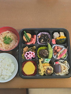 夕食には、近所のお料理屋さんで母が注文してくれていた精進弁当を頂きました。