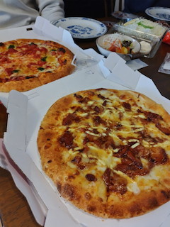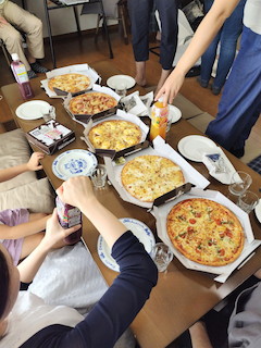 10月は夫、11月は母、12月は長女のだんなさんのお誕生月です。 メニューは恒例のピザに加えて、とんかつやエビフライなどのプレートをテイクアウト。みんなの大好物がずらりと並びました。 ケーキは長女が買ってきてくれました。クリスマスらしい器に入ってものや独特なフォルムのものなど、目にも楽しいおいしいケーキでお祝いすることができました。 今回はクリスマスプレゼント交換をしました。 メンバー9名(赤ちゃんのりーは除いて)がそれぞれプレゼントを用意。 1~9まで番号をつけました。(るーがつけてくれました) 箱の中のくじを順番に引いて、せーのでくじをオープン! 「大きい包みが当たった!」 「かわいいパッケージ!」 「いっぱいお菓子が入ってる!」などなど、みんな口々に盛り上がっていました。 プレゼント交換なんて久しぶりで、とっても楽しかったです。 私は美味しそうな焼き菓子の詰め合わせが当たってラッキー♪明日からのおやつタイムが楽しみです♬ 実は10月11月のお誕生日会はもう少し前に行う予定でしたが、都合が悪くなったメンバーがいて延期になっていました。 クリスマス会と一緒ですがようやくお祝いできてよかったです。 みんなありがとう♬ (2024.12.25 miyu) ![]() ![]() ![]() (2024.12.25) |