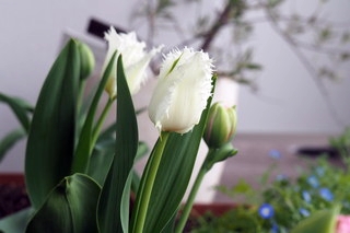 | ベランダのチューリップが咲きました。 花びらのフリンジがかわいいです♪ 毎年のことですが、「こんな花だったっけ」と、半年前にお店で選んだときの記憶が定かではない私。でもこんなにかわいい花の球根を選んだ自分をちょっと褒めたりして(笑) この白いチューリップと同じ時期に植えた、別の種類のチューリップももう花開きそうで、楽しみです♪ ネモフィラの花も満開になりました。 「青い絨毯」とまではいかないですが、「青い玄関マット」くらいでしょうか。 昨年の秋に妹がネモフィラの種を実家と私に分けてくれました。 それぞれの場所で植えたネモフィラ。先日実家でも妹の家でもうちと同じようにかわいい花がたくさん咲いていると報告をもらいました。 実家では花が咲く少し前に雪が積もったそうですが、それにも負けず咲いてくれたそうです。 小さくてかわいいのにとっても強い花! 毎朝ベランダを見るのが楽しみです。 ![]() (2024.04.16 miyu) |