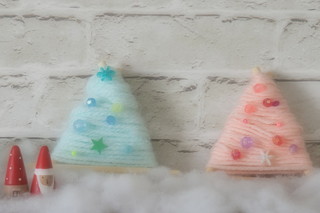 割りばしと毛糸とビーズでできたかわいいツリー。