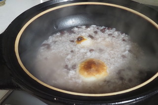 さて、写真は今月8日に炊いた七草がゆと、15日に炊いた小豆がゆです。