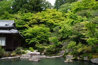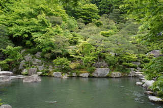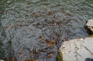 | 入山受付をしてすぐの、本坊庭園。青紅葉が素晴らしく、素晴らしい庭園です。 | ここでは、鯉にエサやりができますが、ちょっとすさまじい! |