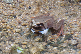 | ここの鐘は、残音が素晴らしいとのことで、ついてみました。確かに素晴らしい! | この本堂の周りは、カエルが大合唱していました。 |