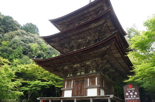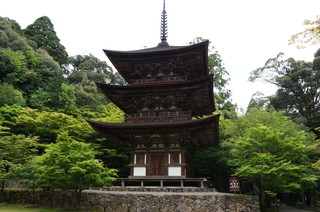 | こちらも国宝の三重塔。 本堂と同じく、純和様建築で釘が使用されていない。初層階の壁画は、巨勢派の画家が描いたもので、鎌倉時代の壁画としては国内唯一のもの。 |
