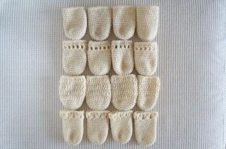 次はほとんどこま編みですが、上の部分にだけ透かし編みを入れたもの。