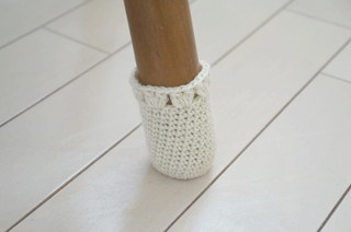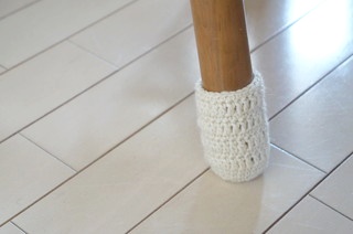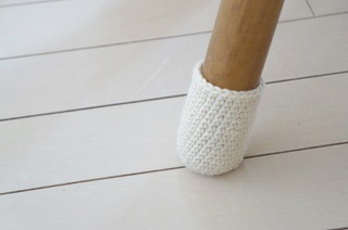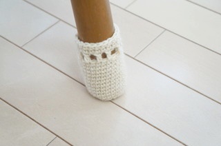 毛糸の編み地はかわいい雰囲気がするだけでなく、伸縮性があるのでイスの足にピタッとフィットしてくれるのがいいなぁと思いました。