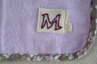 ラベンダーのタオルをパイピングしたテープはリバティのものです。