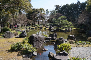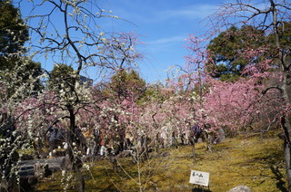 | 神苑への入場は600円/人となります。約150本の梅が所狭しと咲いています。 | 神苑に入った瞬間に梅の良い香りが漂ってきました。 |