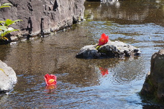 | こちらは平安の庭です。 | そこにも椿の花が水辺を彩っていました。 |