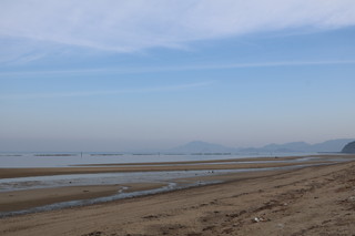 早朝は、ホテルのある有明浜を探索しました。こちらも潮の満ち引きが大きく、父母ヶ浜のようになってました。 |