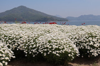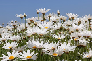 と言うことで行って見ました。青空にも恵まれ、真っ白なマーガレットに青い空、青い海のコントラストが本当にきれいでした。 |