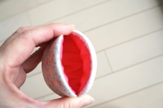 でもコロンとしたかわいいポーチができて嬉しいです。パカッと開けたところもかわいいです♪