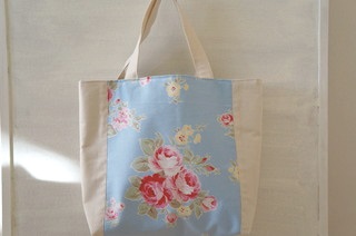 薔薇の花を真ん中に持ってきたバッグを2種類・・・ピンク系とブルー系。