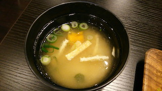 お味噌汁にはカボチャやダイコンなど根菜類が入っていました。
