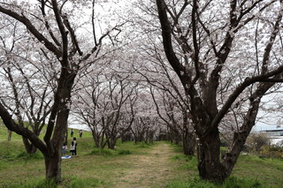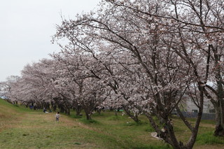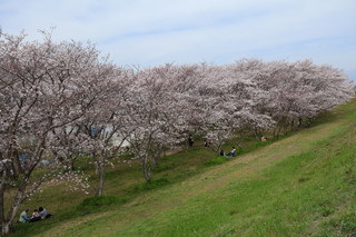 守山市にある、笠原桜公園の桜をご紹介します。野洲川の堤防沿いに連なる桜は見ごたえ十分、多くの家族連れで賑わっていました。