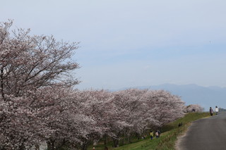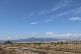 そしてもうひとつ、新草津川の桜並木です、実に557本の桜が植えられています。比叡山をバックに気持ちの良い空とのマッチングも抜群です。