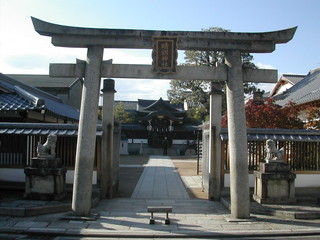 | この紋が印象的ですね | 堀川通りから見た神社の様子。こじんまりとしてます。 |