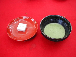 | 境内にある、茶店でお茶をいただきました。 | お菓子つきで500円です。非常に趣があっていいですね。 抹茶もおいしいです。お菓子は、中に餡が入っていてちょっと塩味もあり美味です。 |