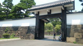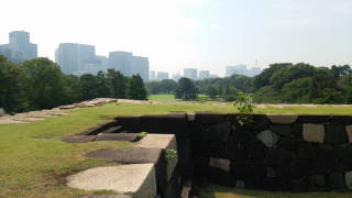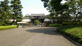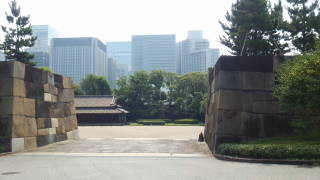 | 地下鉄大手町からすぐの大手門が東御苑への入り口です。この大手門は江戸城の正門にあたり、ここから将軍や、諸侯が登城した。 | 大手門から桔梗濠を臨む。 |
