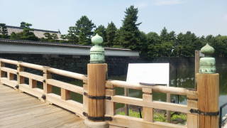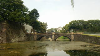 | 皇居といえば、この景色。二重橋です。 | なんと、この日は、この二重橋にいる時に、天皇陛下の車列に遭遇しました。皇后さまが手を振ってられました。すごい警備です。当たり前ですが。 |
