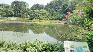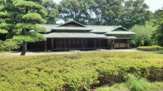 | 二の丸庭園にある、諏訪の茶屋。明治に吹上御苑に建てられたものを移築したものです。 | 二の丸庭園は、9代将軍家重時代に整備された。 |